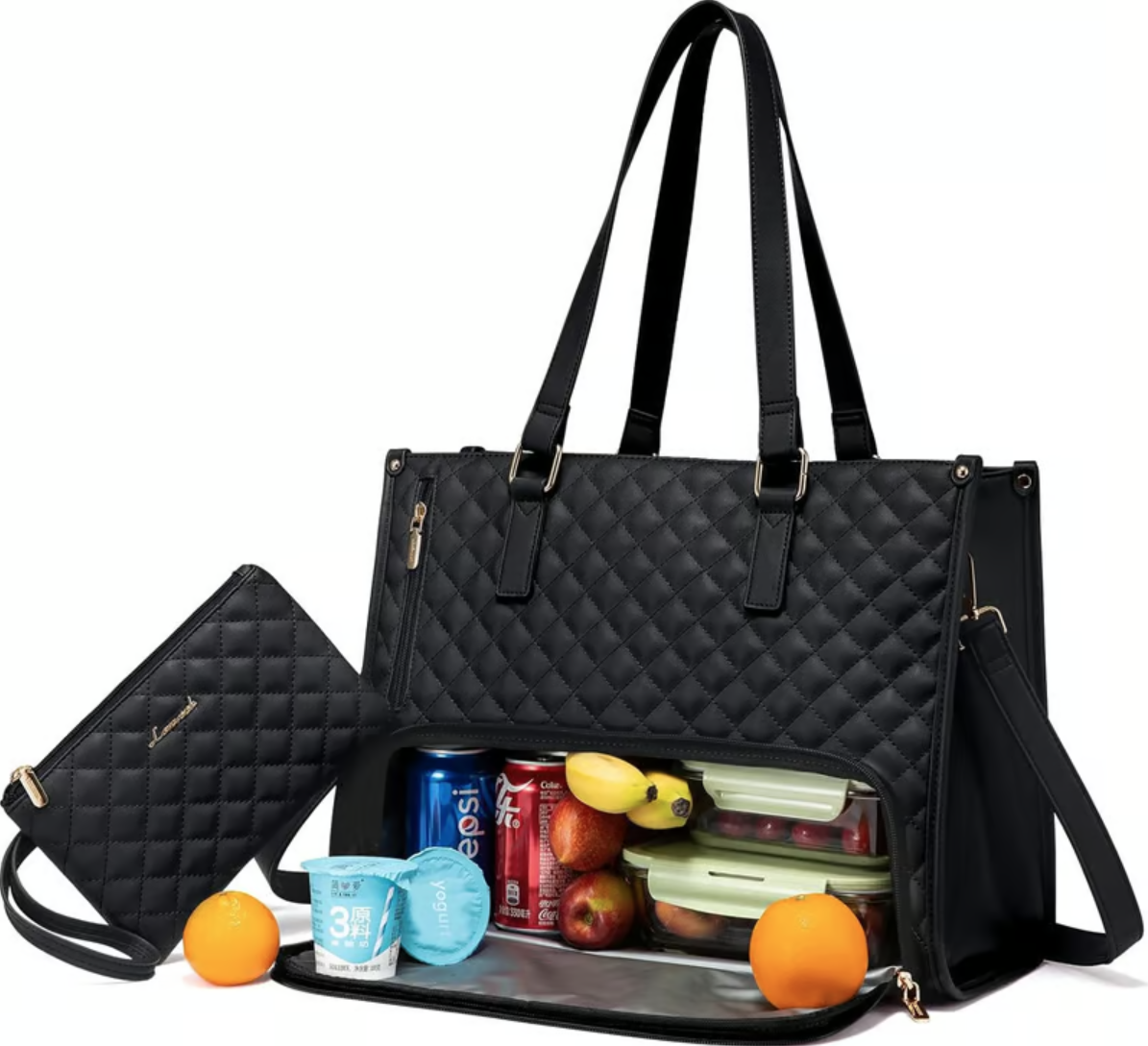 Lunch Tote Bag for Women - 15.6 Inch Laptop Bag with Insulated Lunch Compartment, Quilted Large Capacity Computer Handbag